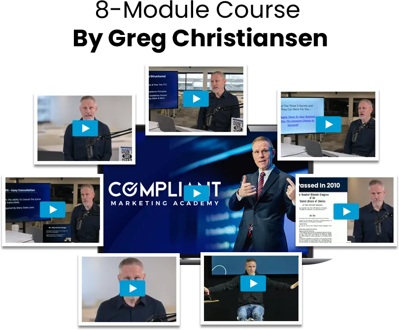 Get our 8-module video course created by the number one compliance attorney in the country, Greg Christiansen, ESQ. This course will break down Section 5 of the Federal Trade Commission Act, teaching marketers exactly what the FTC considers a violation, one rule at a time.
