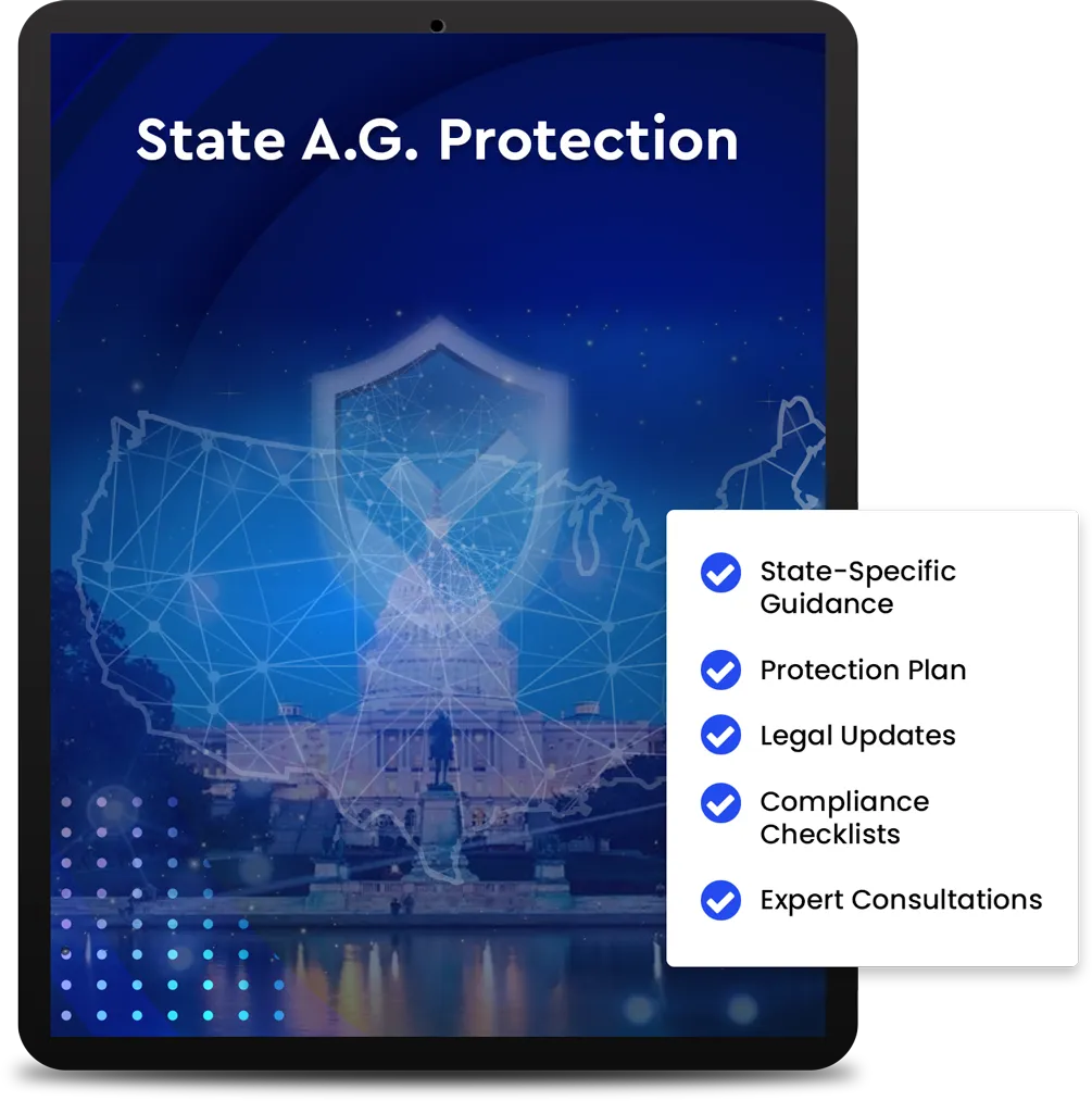 Navigate the complexities of state regulations with our State Attorney General (A.G.) Protection. This bonus includes comprehensive guidance and strategies to ensure your business complies with state-specific laws, protecting you from potential legal challenges at the state level.