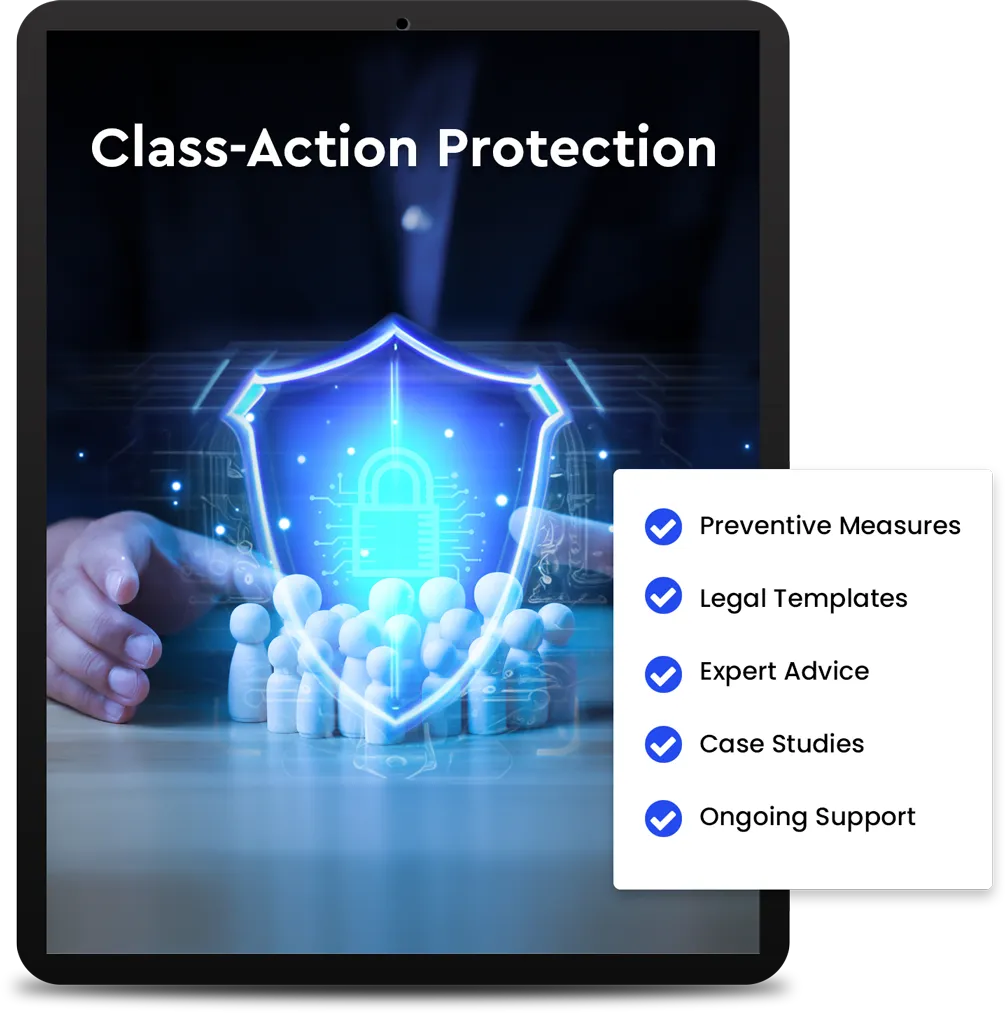 Minimize your risk of class-action lawsuits with our Class-Action Protection. This feature includes preventive measures and legal strategies designed to protect your business from large-scale legal challenges, ensuring you can operate with confidence.