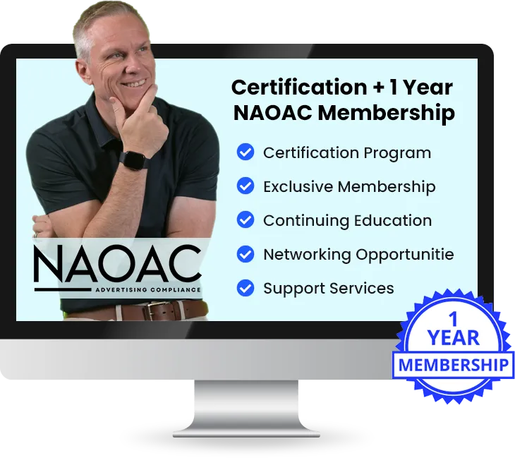 Earn a certification and enjoy a one-year membership with the National Association of Advertising Compliance (NAOAC). This bonus provides comprehensive training and resources to help you stay compliant and demonstrate your commitment to ethical marketing.